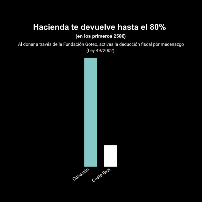 No es magia, es la Ley de Mecenazgo. Para los primeros 250€ que dones, Hacienda te devuelve el 80% en tu próxima declaración de la renta.